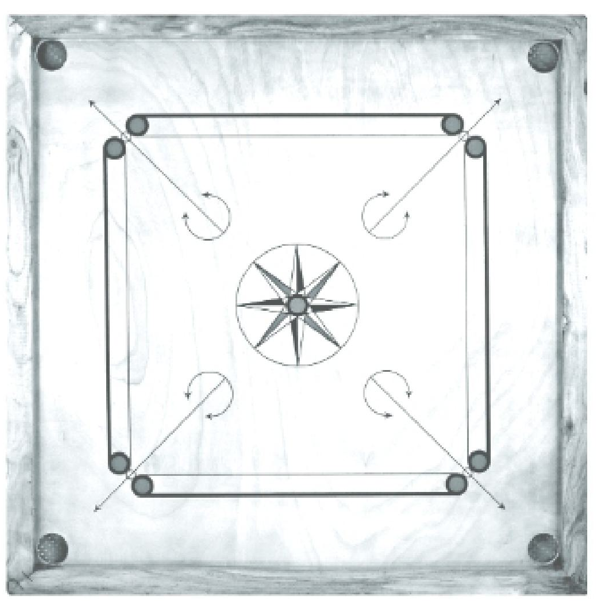 ক্যারম খেলার জন্য উন্নতমানের বোরিক পাউডার ব্যবহার করতে হবে যাতে বোর্ডের উপরিভাগ মসৃণ ও শুকনো থাকে।
