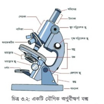 | কাজ: শিক্ষকের সাহায্য নিয়ে একটি অণুবীক্ষণ যন্ত্র পর্যবেক্ষণ কর এবং বিভিন্ন অংশের নাম লিখ। |
