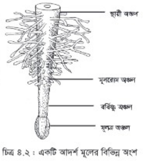 - স্থায়ী অঞ্চল: এখান থেকে মূলের শাখা ও প্রশাখা সৃষ্টি হয়।