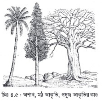 ১. মঠ আকৃতি: কোনো কোনো গাছে প্রধান কাণ্ডটি থেকে এমনভাবে শাখা-প্রশাখা সৃষ্টি হয় যে পূর্ণাঙ্গ গাছটিকে একটি মঠের ন্যায় দেখায়। এ গাছের নিচের দিকের শাখাগুলো বড়ো এবং ক্রমান্বয়ে উপরের দিকের শাখাগুলো ছোটো হয়ে থাকে।