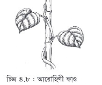 গ) আরোহিণী: এ সকল কাণ্ড কোনো অবলম্বনকে আঁকড়ে ধরে উপরের দিকে বেড়ে ওঠে, এরা ক্লাইম্বার বা আরোহিণী। যথা- শিম, পান, বেত ইত্যাদি।