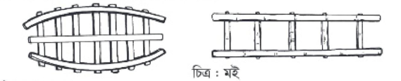 মই: মই প্রধানত বাঁশ বা কাঠ দ্বারা তৈরি করা হয়। মোটা একটি বাঁশকে লম্বালম্বি ফালি করে দুই ভাগ করা হয়। অনেক মইয়ে তিনটি ফালি ব্যবহার করা হয়। এক জোড়া গরু হলে লম্বা হবে ৫ ফুট এবং দুই জোড়া গরু হলে লম্বা হবে সাড়ে সাত ফুট। মইয়ের কাজ হলো: