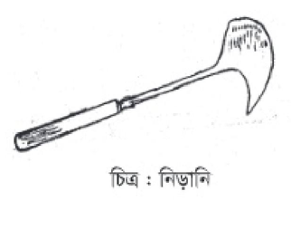 নিড়ানি: ফসলের জমি হতে আগাছা পরিষ্কার ও মাটি আলগা করার কাজে নিড়ানি ব্যবহার করা হয়। এর আগার দিক অর্ধ-চন্দ্র আকৃতির লোহার পাত দিয়ে তৈরি করা হয়। আর গোড়ার দিকে সরু হয় এবং কাঠের বাঁট লাগানো হয়।