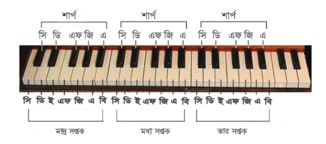 চিত্র-২: হারমোনিয়ামের বিভিন্ন পর্দা ও স্কেল পরিচিতি