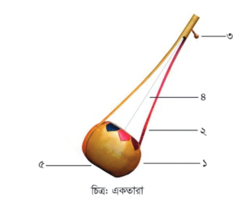 একতারা তত গোত্রীয় লোকজ বাদ্যযন্ত্র। একতারা তৈরি করতে একটি লাউয়ের খোল, একটি বাঁশের দণ্ড, কাঠের বয়লা ও একটি তার প্রয়োজন। বাদ্যযন্ত্রটির নির্মাণ পদ্ধতি সহজ। গোলাকৃতির লাউয়ের খোলের উপরিভাগ বৃত্তাকারে কাটা হয়। একটি সরু তিন ফুট লম্বা বাঁশের দণ্ডের এক প্রান্তের গিটকে অটুট রেখে এবং বাঁশের মধ্যাংশ চিরে সেটিকে লম্বা চিমটা আকারে লাউয়ের খোলের উভয় দিকে তার বা সুতা দিয়ে শক্ত করে বেঁধে দেওয়া হয়। লাউয়ের খোলের তলা কেটে চামড়ার ছাউনি দেওয়া হয় এবং এই ছাউনির ভিতর দিয়ে লোহার তার ঢুকিয়ে তারের অন্য প্রান্ত বাঁশের মাথায় কানের সাথে যুক্ত করা হয়। ডান হাতের তর্জনী বা মধ্যমা আঙ্গুলে মিজরাব লাগিয়ে একতারা বাজাতে হয়। বাউল গানের সঙ্গে একতারা যন্ত্র বেশি ব্যবহৃত হয় ।