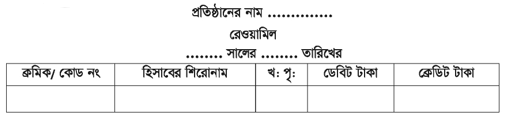 ১। ক্রমিক/কোড নং : যদি হিসাবের কোনো কোড নং থাকে, তবে হিসাবের বিপরীতে সেই কোড নং, হিসাবের কোড নং না থাকলে ধারাবাকিভাবে ক্রমিক নং বসাতে হয়। যেমন- ১, ২, ৩ ইত্যাদি।