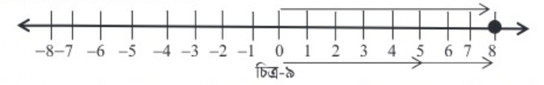 (ঘ) সংখ্যারেখার সাহায্যে 5ও-3 এর যোগ অর্থাৎ, (- 5) + (- 3) নির্ণয় : প্রথমে একটি সংখ্যারেখা আঁকি।