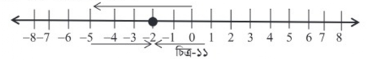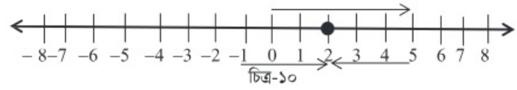 সংখ্যারেখার উপর 0 বিন্দু থেকে বামদিকে প্রথমে 5 ধাপ অতিক্রম করে 5 বিন্দুতে পৌঁছাই।