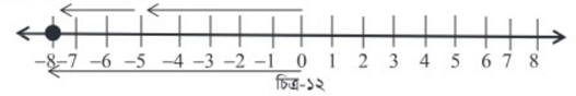 তারপর – 5 বিন্দুর বামদিকে আরও 3 ধাপ অতিক্রম করি এবং ৪ বিন্দুতে পৌঁছাই। তাহলে - 53 - 3 এর যোগফল হবে (-5)+(-3) = -৪ (চিত্র-১২)।