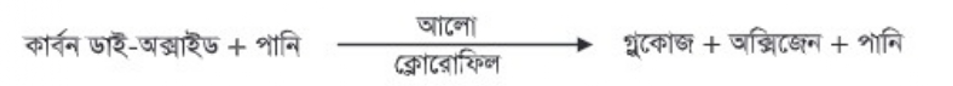 • সালোকসংশ্লেষণে কার্বন ডাই-অক্সাইড ও পানি গৃহীত হয় এবং গুকোজ ও অক্সিজেন উৎপন্ন করে।