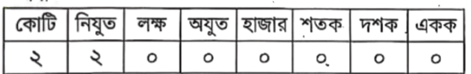 ∴ সংখ্যাটি অঙ্কে ২২০০০০০০ এবং কথায়: “দুই কোটি বিশ লক্ষ"।