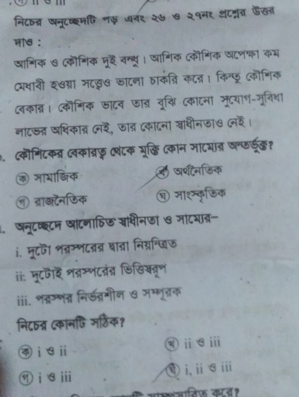 ক) নবি-রাসুল খ) ফেরেশতা গ)আল্লাহ ঘ)মানুষ