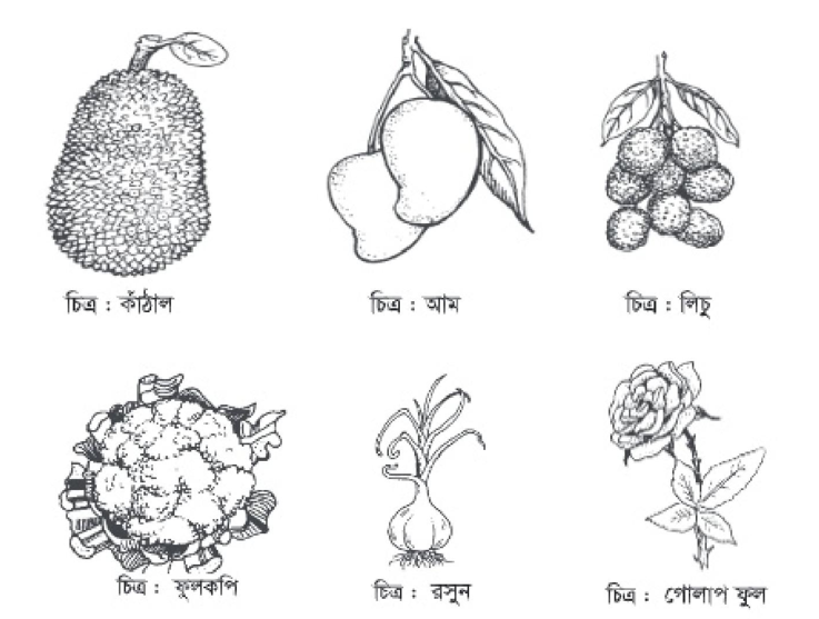 | কাজ: বাংলাদেশে জন্যে এমন ফল, শাকসবজি ও ফুলের তালিকা তৈরি কর। |