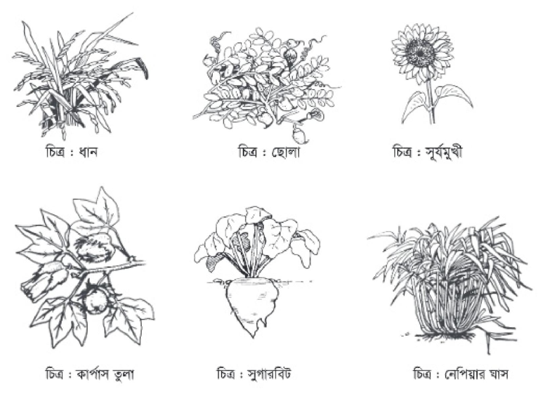 নতুন শব্দ: দানা ফসল, আঁশ ফসল, পশু খাদ্য ফসল।