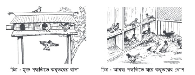 বহুকাল আগে থেকে মানুষ মুক্ত পদ্ধতিতে কবুতর পালন করে আসছে। কিন্তু বর্তমানে অনেকে অর্ধ-আবদ্ধ ও আবদ্ধ পদ্ধতিতে কবুতর পালন করছে। আমাদের দেশে সাধারণত মুক্ত অবস্থায় কবুতর পালন করা হয়। আবার অনেককে তারের জাল দিয়ে ঘিরে অথবা বড় আবদ্ধ ঘরে কবুতর পালন করতে দেখা যায়।