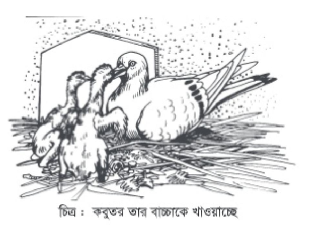 ৪. স্ত্রী ও পুরুষ কবুতর উভয়ই পালাক্রমে খাওয়ায়।