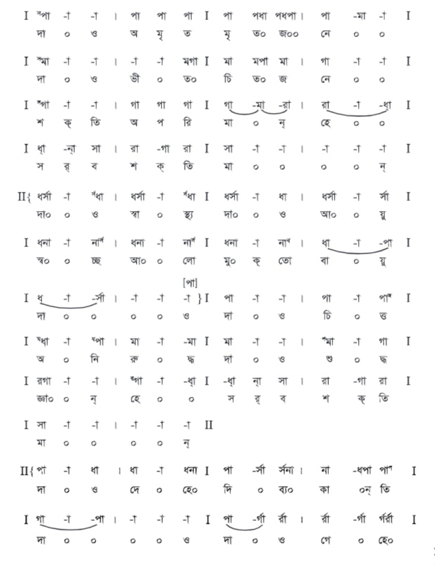 উভয়ে : দাও পুণ্য প্রেম ভক্তি, মঙ্গল কল্যাণ।