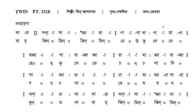 এইচ. এম. ভি. এন ৭১৫৫। শিল্পী: ধীরেন্দ্রনাথ দাস। মার্চ-সংগীত। ছায়াছবি: চট্টগ্রাম অস্ত্রাগার লুণ্ঠন। তাল: দাদ্রা