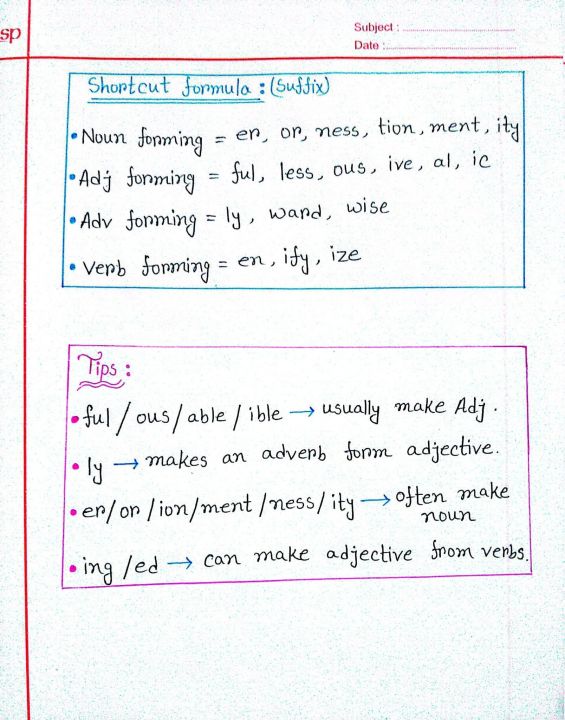 Suffix & Prefix special hand note