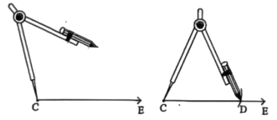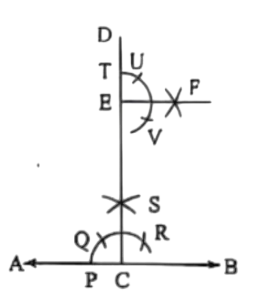 ১৫। AB সরলরেখার C বিন্দুতে CD লম্ব আঁক। আবার CD রেখার উপর একটি বিন্দু E লও। এবার E বিন্দুতে CD রেখার উপর লম্ব আঁক।