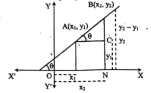 (সংক্ষিপ্ত প্রশ্ন)জ্যামিতিক পদ্ধতিতে প্রমাণ কর যে, (x1, y1) ও (x2, y2) বিন্দুগামী সরলরেখায় ঢাল