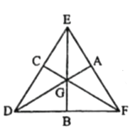 Δ DEF এর DA, EB ও FC মধ্যমাত্রয় পরস্পরকে G বিন্দুতে ছেদ করেছে।