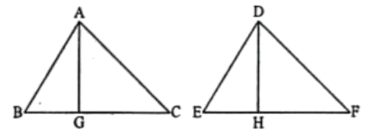 দুইটি সদৃশকোণী △ABC ও △DEF এর BC এবং EF এর উপর যথাক্রমে AG ও DH লম্ব।