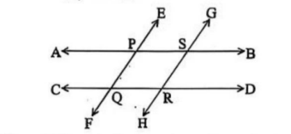(খ) চিত্র থেকে চারটি কোণ নিয়ে এদের সম্পূরক কোণ, একান্তর কোণ নির্ণয় কর