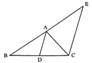 △ ABC-এর ∠A এর সমদ্বিখণ্ডক AD, BC কে D বিন্দুতে ছেদ করেছে। DA এর সমান্তরাল CE রেখাংশ বর্ধিত BA বাহুকে E বিন্দুতে ছেদ করেছে।
