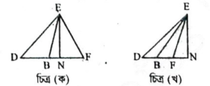 অঙ্কন: DF বাহুর উপর (চিত্র ক) এবং DF বাহুর বর্ধিতাংশের উপর (চিত্র খ) EN লম্ব অঙ্কন করি।