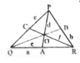 △ PQR-এর মধ্যমা PA, QB এবং RC পরস্পরকে বিন্দুতে ছেদ করেছে।