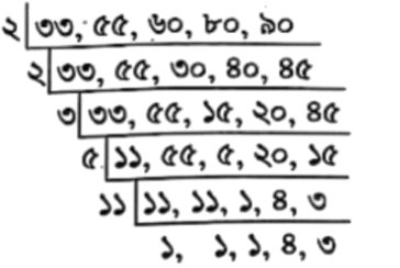 ১৪৪, ২৪০ এবং ৬১২ এর সাধারণ মৌলিক গুণনীয়কগুলো হলো ২, ২, ৩