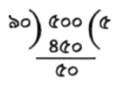 ৫০÷২০ =২ ভাগশেষ ১০