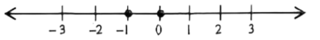 এখন, সংখ্যারেখায় 0 এবং -1 স্থাপনের জন্য 0 এবং ০ এর বাম দিকে 1 একক দূরে বিন্দু দুইটিকে গাঢ় গোল চিহ্ন দ্বারা আবদ্ধ করি।