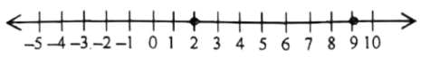 সংখ্যারেখা থেকে দেখা যায় যে, 9 একক দূরের গোল চিহ্নিত অংশটি 2 একক দূরে গোল চিহ্নিত অংশের ডানে অবস্থিত।