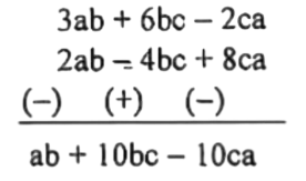 3ab + 6bc - 2ca থেকে 2ab - 4bc + 8ca (বিয়োগ কর)