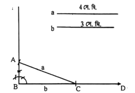 (গ) এমন একটি সমকোণী ত্রিভুজ অঙ্কন কর যেন সমকোণ সংলগ্ন বাহুদ্বয় a ও b এর সমান হয়।