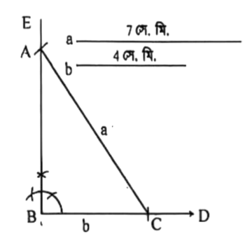 (গ) এমন একটি সমকোণী ত্রিভুজ অঙ্কন কর যেন সমকোণ সংলগ্ন বাহুদ্বয় a ও b এর সমান হয়।