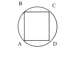 Find the area of the region inside the circle and outside the square ABCD. The radius of the-