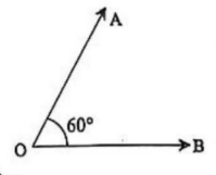প্রথমে একটি চাঁদা নিই। এখন চাঁদাটি কাগজের উপর রেখে চাঁদার কেন্দ্রবিন্দু থেকে ব্যাস বরাবর ডানদিকে OB রশ্মি আঁকি। ডানদিক থেকে চাঁদার নিচের স্কেলের 60 ° নির্দেশক দাগের উপর একটি বিন্দু A নিই। এবার OA রশ্মি আঁকি। তাহলে, AOB আঁকা হলো যার পরিমাণ 60 °1