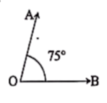 প্রথমে একটি চাঁদা নিই। এখন চাঁদাটি কাগজের উপর রেখে চাঁদার কেন্দ্রবিন্দু থেকে ব্যাস বরাবর ডানদিকে OB রশ্মি আঁকি। ডানদিক থেকে চাঁদার নিচের স্কেলের 75 °নির্দেশক দাগের উপর একটি বিন্দু A নিই। এবার OA রশ্মি আঁকি। তাহলে, AOB আঁকা হলো যার পরিমাণ 75