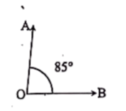 প্রথমে একটি চাঁদা নিই। এখন চাঁদাটি কাগজের উপর রেখে চাঁদার কেন্দ্রবিন্দু থেকে ব্যাস বরাবর ডানদিকে OB রশ্মি আঁকি। ডানদিক থেকে চাঁদার নিচের স্কেলের 85 °নির্দেশক দাগের উপর একটি বিন্দু A নিই। এবার OA রশ্মি আঁকি।