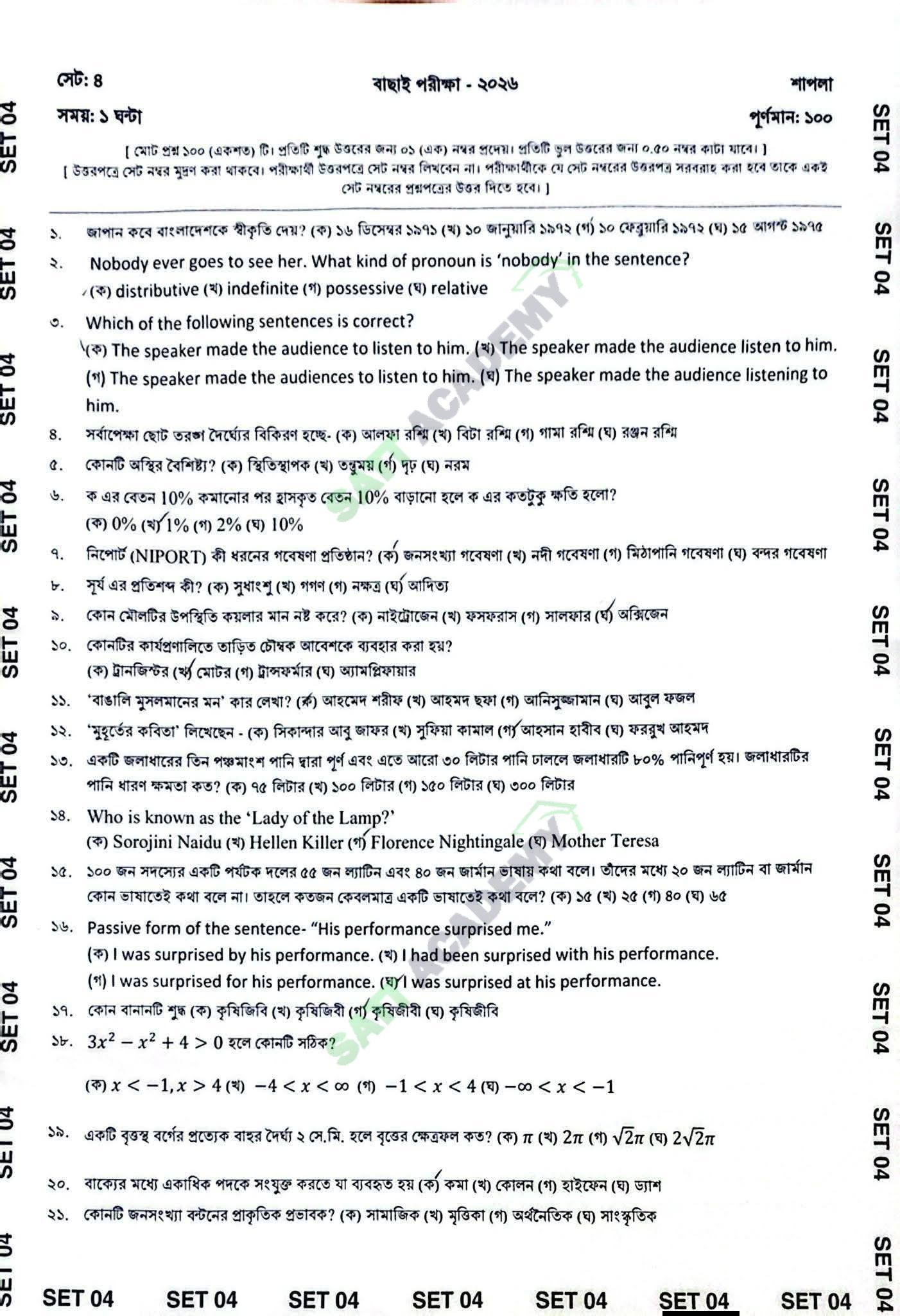 বাংলাদেশ সরকারী কর্ম কমিশন - মৎস্য ও প্রাণিসম্পদ মন্ত্রণালয় - মৎস্য জরিপ কর্মকর্তা (নন ক্যাডার ১০ম গ্রেড) (সেট : ৪) (20-01-2026) এর মূল প্রশ্ন ও সমাধান, চাকরি পরীক্ষা প্রশ্ন, Satt Academy Question Bank, Live
