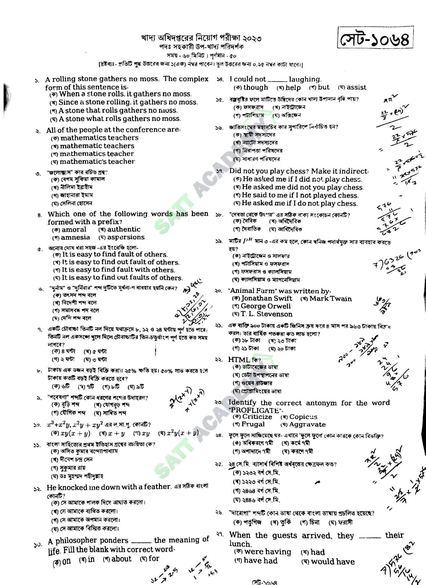 খাদ্য অধিদপ্তর - সহকারী উপ-খাদ্য পরিদর্শক (29-11-2025) এর মূল প্রশ্ন ও সমাধান - Hard Copy প্রশ্ন আপলোড করুন সহজেই | Satt Academy