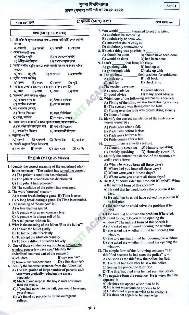 খুলনা বিশ্ববিদ্যালয় - C ইউনিট (কলা ও মানবিক স্কুল, সামাজিক বিজ্ঞান স্কুল, আইন স্কুল, শিক্ষা স্কুল ও চারুকলা স্কুল) শিক্ষাবর্ষ : ২০২৫-২৬ (18-12-2025) এর মূল প্রশ্ন ও সমাধান, Hard Copy প্রশ্ন আপলোড, প্রশ্ন ব্যাংক আপলোড, MCQ