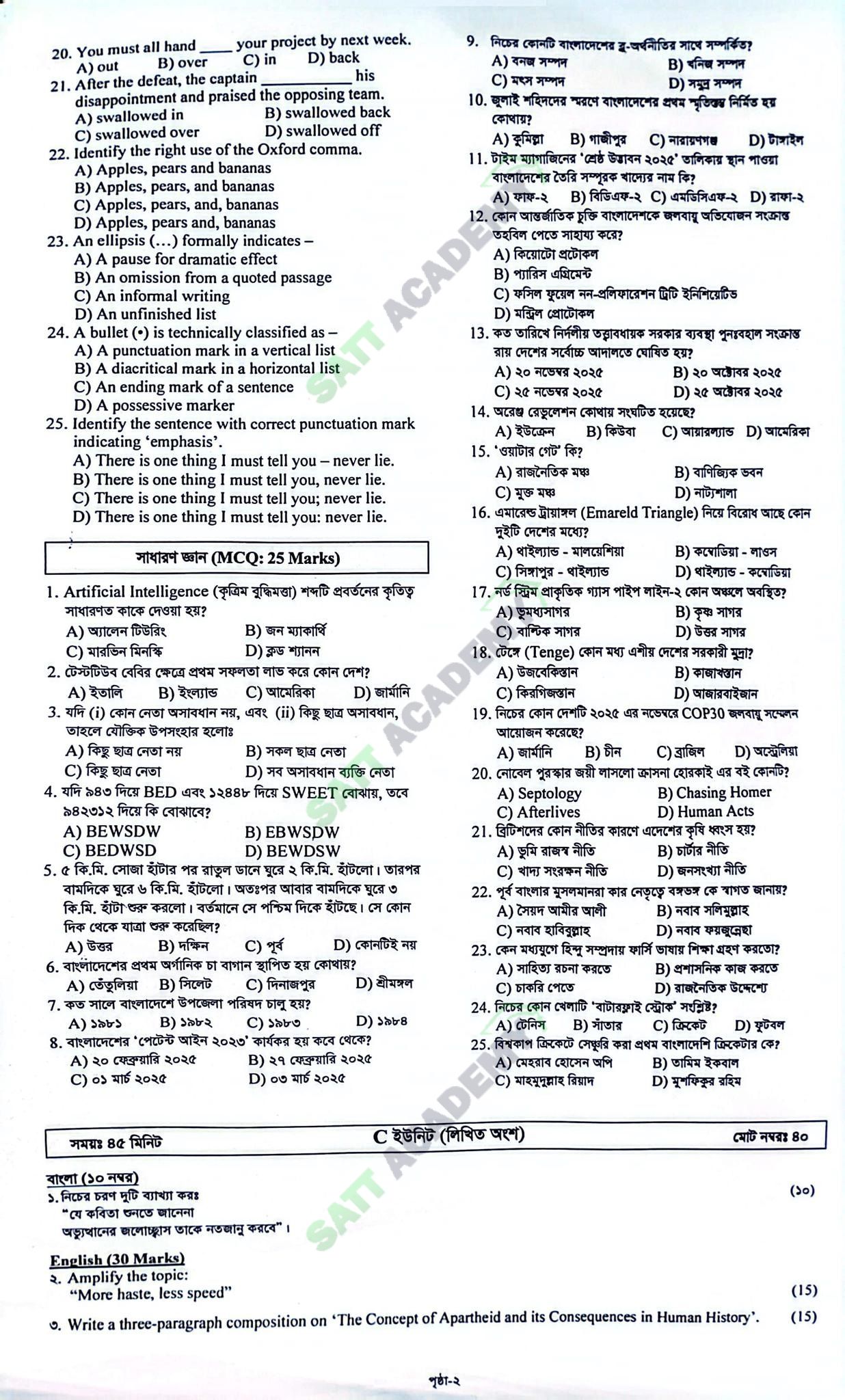খুলনা বিশ্ববিদ্যালয় - C ইউনিট (কলা ও মানবিক স্কুল, সামাজিক বিজ্ঞান স্কুল, আইন স্কুল, শিক্ষা স্কুল ও চারুকলা স্কুল) শিক্ষাবর্ষ : ২০২৫-২৬ (18-12-2025) এর মূল প্রশ্ন ও সমাধান, চাকরি পরীক্ষা প্রশ্ন, Satt Academy Question Bank, Live