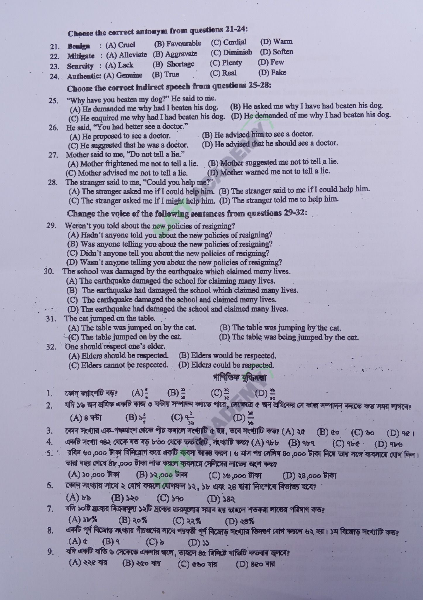 বহুনির্বাচনী (MCQ) প্রশ্ন অথবা যে কোনো পরীক্ষার PDF ও Image ফরম্যাটের প্রশ্ন