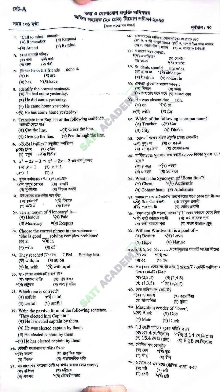 তথ্য ও যোগাযোগ প্রযুক্তি অধিদপ্তর - অফিস সহায়ক (15-11-2025) এর মূল প্রশ্ন ও সমাধান