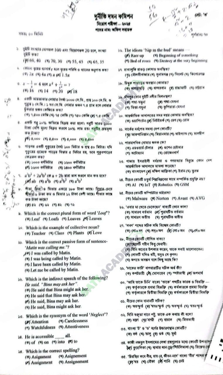 দুর্নীতি দমন কমিশন - অফিস সহায়ক (14-11-2025) এর মূল প্রশ্ন ও সমাধান, Hard Copy প্রশ্ন আপলোড, প্রশ্ন ব্যাংক আপলোড, MCQ
