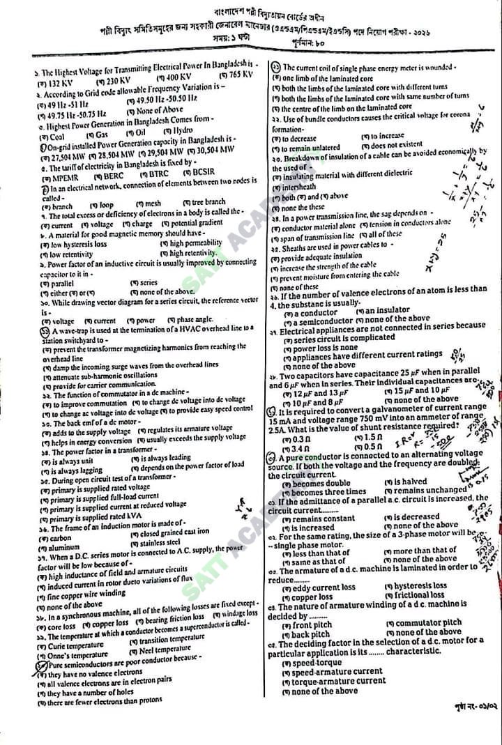 বাংলাদেশ পল্লী বিদ্যুতায়ন বোর্ড - পল্লী বিদ্যুৎ সমিতি - সহকারী জেনারেল ম্যানেজার (ওএন্ডএম/পিএন্ডএম/ইএন্ডসি) (27-02-2026) এর মূল প্রশ্ন ও সমাধান - Hard Copy প্রশ্ন আপলোড করুন সহজেই | Satt Academy